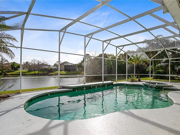 Florida Lifestyle Sensation! The gorgeous SOLAR HEATED POOL HOME is ideally located with a spectacular WATER VIEW. Tranquility is here! This picture perfect 2,605 sq., ft. home with 4 bedrooms/3 baths, pool and hot tub, with a side entry 3 CAR GARAGE is move in ready. The home is light & bright with an abundance of natural light, VAULTED CEILINGS offering that feeling of spaciousness, with an OPEN & SPLIT FLOOR PLAN and beautiful views. Sliding doors lead out to your HUGE COVERED PATIO and screened pool, ideal for entertaining. Rich warm laminate flooring, tile, and freshly painted interior adorn this gorgeous home. Formal living & dining rooms are towards the front of the home and the kitchen overlooks the large family room, wood burning fireplace & breakfast dinette. The LARGE OPEN KITCHEN has solid wood cabinets, newer appliances and a breakfast bar overlooking the family room. Your SPACIOUS master bedroom suite with its separate PRIVATE entry to your pool offers privacy and the master bathroom with garden tub, his/her vanities and separate shower is completed with generous closet space. 3 WAY SPLIT PLAN. The 4th bedroom adjacent pool bath is ideal for guests or in-law quarters & the other 2 bedrooms & 1 bathroom, are privately situated. 1 YR OLD Rheem AC system offers peace of mind and new blinds throughout. Ideally located near the Waterford Lakes Shopping Center, A+ schools, our famous beached and of course UCF. You've worked hard, you deserve the lifestyle this home offers.