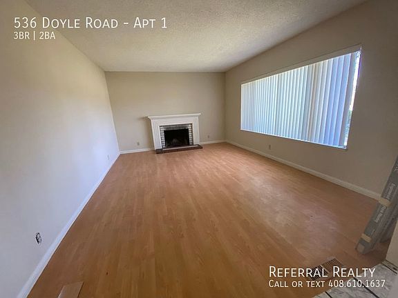 This 1450 square foot apartment home has 3 bedrooms and 2.0 bathrooms. This home is located at 536 Doyle Rd APT 1, San Jose, CA 95129.