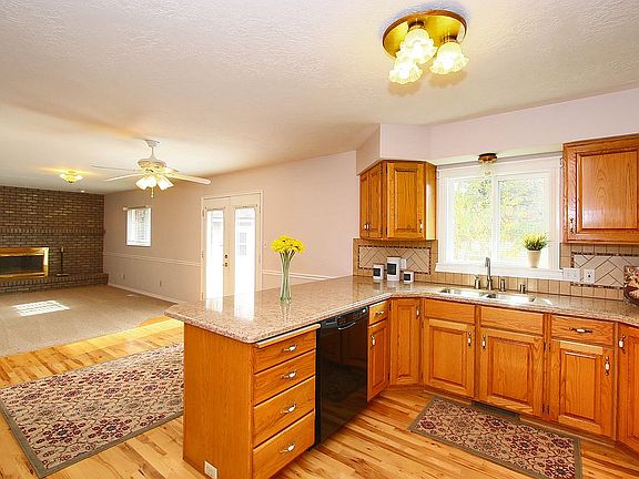 Beautiful home in a friendly community. Easy access to the I15 freeway and shopping. Upstairs - two bedrooms, two bath, kitchen, two living spaces and dining area. includes: refrigerator, dishwasher, garbage disposal, microwave, oven / range, washer & dryer Downstairs - three bedrooms, one bath, living space. includes: refrigerator, oven / range, rear entry door so can be used as an apartment. Attached one-car garage. Exterior brick and stucco. Exterior buildings - shed and large shop. New air conditioner, water softener, windows, back doors, remodeled bathrooms, remodeled downstairs kitchen