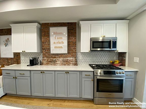 Available 9/1. This stunning 3 bedroom + office apartment is located in on E Broadway in an incredibly desirable part of Southie just minutes to everything. Completed in the summer of 2021, this stunning brownstone apartment features in unit laundry and a luxury kitchen with a huge island and stainless steel appliances. The exposed brick throughout the unit and the open floor plan produces a beautiful matrimony of modern and mid-century design. On top of the high end finishes, this unit allows for outdoor living on the back deck which features incredible views of the Boston skyline.