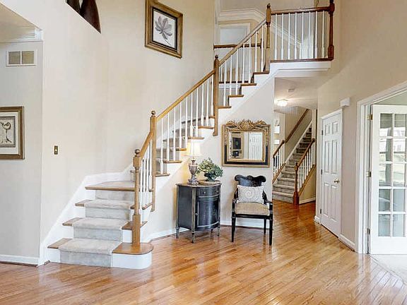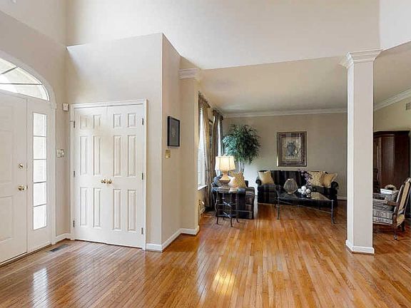 Single family, 5 bedroom, 2.5 bath located on a Premium lot in the beautiful community of Talamore. This location has Golf Course and Pond views on a quiet non-through street! If you are looking for a Private, Tranquil setting this is a must see property. Great curb appeal and side entry garage. This spacious Windsor Model features a 2-story foyer with turned staircase. French doors provide privacy for home office. Beautiful Hardwood Floors in formal living and dining room, kitchen and sunroom. Dining room has detailed wall-to-wall Wainscoating. Gourmet Kitchen with large center island, 42 inch White Cabinets, and new Stainless Steel appliances. Kitchen opens up to Sunroom and fabulous 2-story Family Room with custom built-in shelving surrounding a beautiful fireplace. From sunroom, access a wonderful Deck and brick Patio area perfect for entertaining. The back staircase leads to upper level with 5 bedrooms. Enjoy golf course and water view from upper deck off Master Bedroom. Large Finished Basement with spacious Laundry Room and additional storage closets. Pleasing paint pallet throughout house, neutral carpet. This is a great property in a wonderful community, come enjoy the Talamore lifestyle with a Social Membership for 6 rounds of Golf, gorgeous Pool with food/beverage service, Fitness Center, Tennis Courts and a Club House Restaurant. * Owner is a licensed realtor