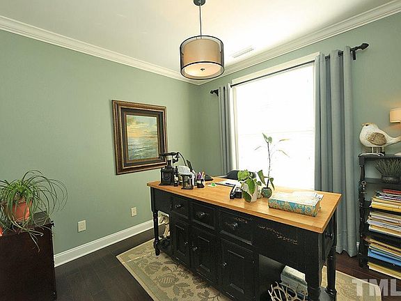Popular WEST CARY location with all the upgrades! Extensive trim work throughout 1st floor, including wainscoting in FDR. TWO SIDED stone fireplace in family room and french doors added to first floor office. 5" plank hardwoods on 1st floor & stair treads. Custom lighting fixtures throughout. HUGE bonus room (or 4th bedroom) & oversized secondary bedrooms. Covered patio with ceiling fan and dedicated gas line for grill. TWO large exterior attached storage units. East facing, Landscaping provided by HOA.