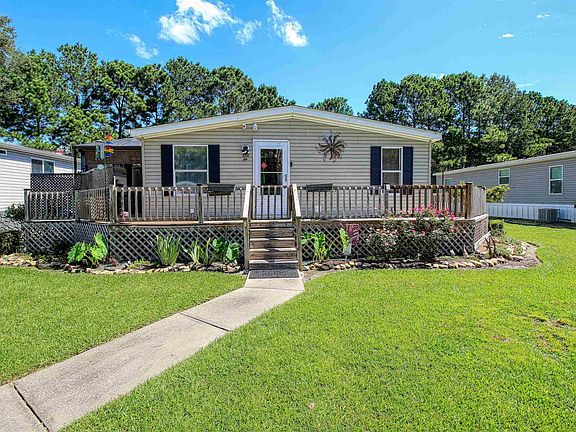 Charming, well-maintained manufactured home on leased land in the tranquil Folly Estates community. This inviting residence features a kitchen island with generous storage, a master bedroom with a separate shower and bathtub and dual vanities, and a wrap-around deck offering a serene sitting area. Ample storage both inside and out, including two storage sheds. Conveniently located near shopping, restaurants, and the beach, with easy access to local amenities. A comfortable, low-maintenance home in a peaceful setting—perfect for year-round living or a relaxing coastal getaway.