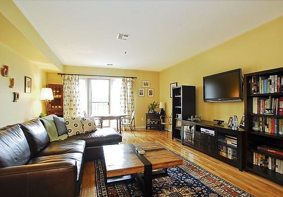 Come home to this inviting 2 bedroom/2 bathroom corner home at the Gotham Square. This lovely home displays an open kitchen that overlooks an expansive living space with a dining area, a Juliet balcony, and an abundance of light. Other aspects of this great place include a washer/dryer, central heat and air, gas range, hardwood floors and 1 parking spot! Gotham Square is an elevator building and is 1 block to the Manhattan Bus and is just steps from great schools, grocery stores, shopping and beautiful parks.