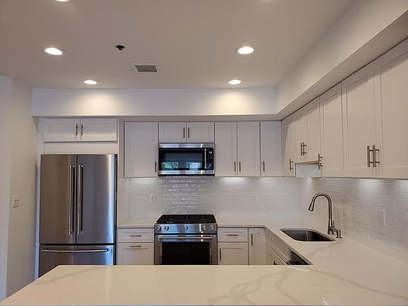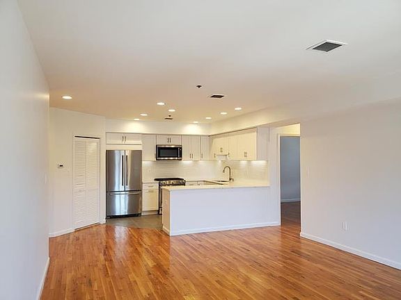 Beautiful and large 1180 SF renovated 2 bed 2 bath condominium. The custom kitchen boasts white shaker cabinetry, quartz countertops, stainless steel KitchenAid appliances, stunning backsplash, under cabinet lighting, French door refrigerator and recessed lighting. The stylish bathrooms feature everything you donat typically find in a rental. There are real hardwood floors throughout, a Juliet balcony in the massive living & dining area with open airy East facing views of midtown Hoboken and the top of the NYC skyline. This wonderful home also features great closets and storage, large capacity washer and dryer, attached garage parking (spot #33), a gym off the lobby and an unbeatable location that is just steps away from the NYC bus, Washington Street, restaurants, shopping, parks, Path trains and everything that the Hoboken lifestyle has to offer. Sorry NO Pets and NO Smokers. Available for September 6th, 2024 occupancy.
