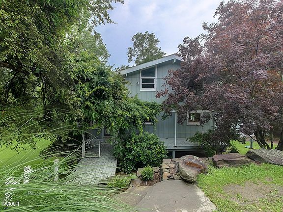Wow! Enjoy spectacular river and park views from this contemporary riverfront home perched above the Lackawaxen River in the charming town of Hawley. Outside you will find wrap around decks with cable railings for unobstructed views, a beautiful pergola on the front deck, detached garage,130 feet of river frontage, and a short walk to the park. Go inside and fall in love with the sunken living room with bamboo floors and modern fireplace, a great kitchen with cherry cabinets and granite counters, large stone floored sun room, windows, windows, and more windows for taking in the views. On the second floor there is a nice, high ceilinged loft perfect for office space, three bedrooms - two with awesome river views - and two spa like baths. Within minutes you can take in