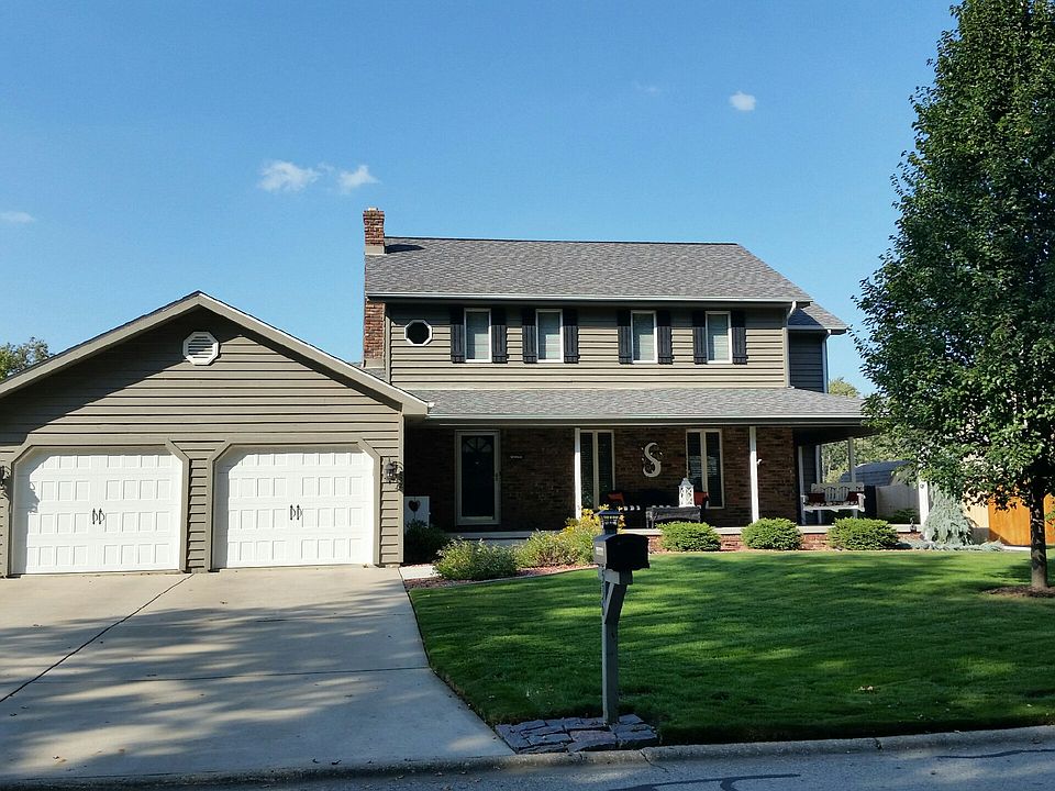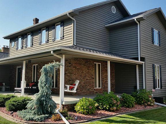 Gorgeous 2 story home with INVITING WRAP AROUND PORCH that backs up to SERENE AERATED POND for your viewing pleasure. Some of the many great amenities are 2 GAZEBOS, one on the HUGE DECK and the other is free standing in FULLY FENCED YARD. LIving & dining room (w/BAY WINDOW) feature HARDWOOD FLOORING & LOADS OF WINDOWS to let in natural light. Kitchen has UPGRADED CERAMIC FLOOR & BACKSPLASH, CORIAN COUNTERS, RAISED PANEL CABINETRY & SGD to ample deck for summer fun. Family room is carpeted, has BEAUTIFUL BRICK GAS FPLC, RECESSED LIGHTING & SGD to yard. A flex room was used as a salon, but could be main floor laundry or additional pantry. Upstairs are the MASTER BEDROOM has 3 CLOSETS, ceiling fan, 2 windows, and PRIVATE 3/4 BATH with LINEN CLOSET, the additional 3 ample bedrooms, all have ceiling fans, and the hall bath featuring maple vanity, granite sinktop, ceramic flooring and tub surround. The basement is semi-finished with additional REC ROOM and MASSIVE STORAGE/LAUNDRY area.