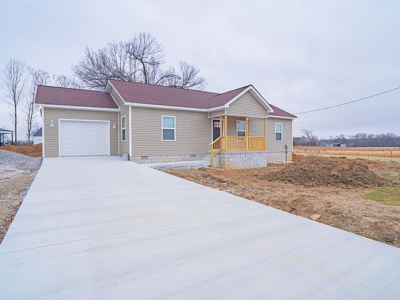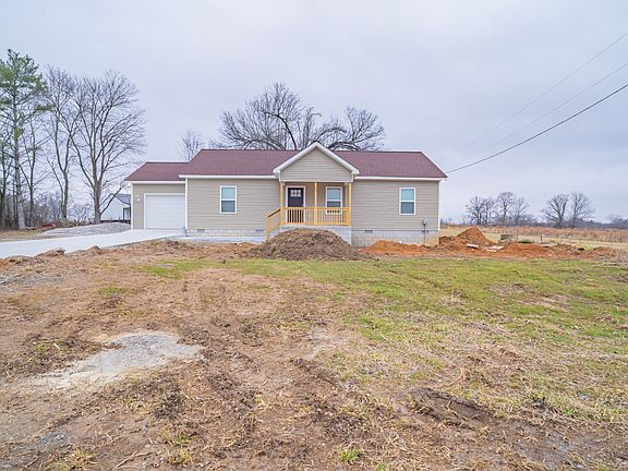 This newly constructed home offers a harmonious blend of modern design and rural tranquility. Set on a spacious 0.54-acre lot, the home features an open floor plan that seamlessly connects the living, dining, and kitchen areas, creating an inviting space for both relaxation and entertainment. The interior boasts waterproof laminate flooring throughout, ensuring durability and ease of maintenance, while the bathrooms are equipped with vinyl waterproof flooring for added resilience. The kitchen is a chef’s delight, featuring granite countertops and stainless steel appliances that combine functionality with contemporary aesthetics. The back deck offers a serene spot to enjoy the huge yard, perfect for morning coffee or evening gatherings. Practical features include a concrete driveway leading to a one-car garage. The property has been professionally surveyed. Embrace the opportunity to own this exceptional home that perfectly balances modern amenities with the peace and charm of country living. Located within close proximity to the Nissan plant in Decherd, TN, this property offers both convenience and a tranquil lifestyle. Yard work and deck to be completed when weather permits.