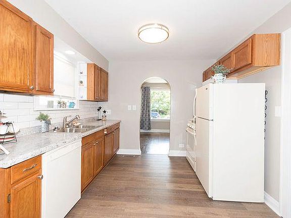 Popular ranch-style home features one-level living. Living room with a large picture window and hardwood flooring. Arched doorway to kitchen with wood laminate flooring, opens to dining room. Full basement with laundry area, washer and dryer staying with home. Two bedrooms on main floor, both with hardwood flooring. The backyard has a deck and is fenced for family and pets to play. Detached one-car garage. Close to local park. Near shopping, restaurants and entertainment.