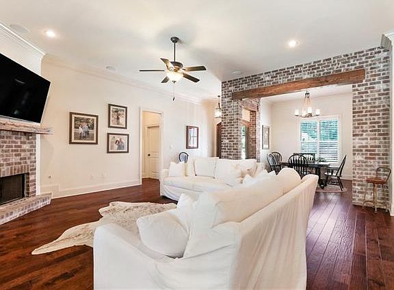 STUNNING HOME IN GATED COQUILLE SUBDIVISON IN MADISONVILLE. THIS MOSTLY BRICK HOME THAT BACKS UP TO GREEN SPACE HAS MANY AMENITIES: IN-GROUND POOL,SURROUND SOUND,SOARING CEILINGS, HAND SCRAPED WOOD FLOORS, WOOD SLAT CEILINGS IN MASTER BEDROOM & PATIO, PLANTATION SHUTTERS, SIDE LOADING GARAGE. KITCHEN HAS ISLAND, GAS STOVE, POT FILLER, STAINLESS APPLIANCES & GRANITE COUNTERS. DEN & DINING ROOM SHARE BRICK ACCENT WALL w/WOOD BEAMS. BUTLERS PANTRY W/ GLASS CABINETS. LAUNDRY HAS FOLDING COUNTER & LAUNDRY SINK.