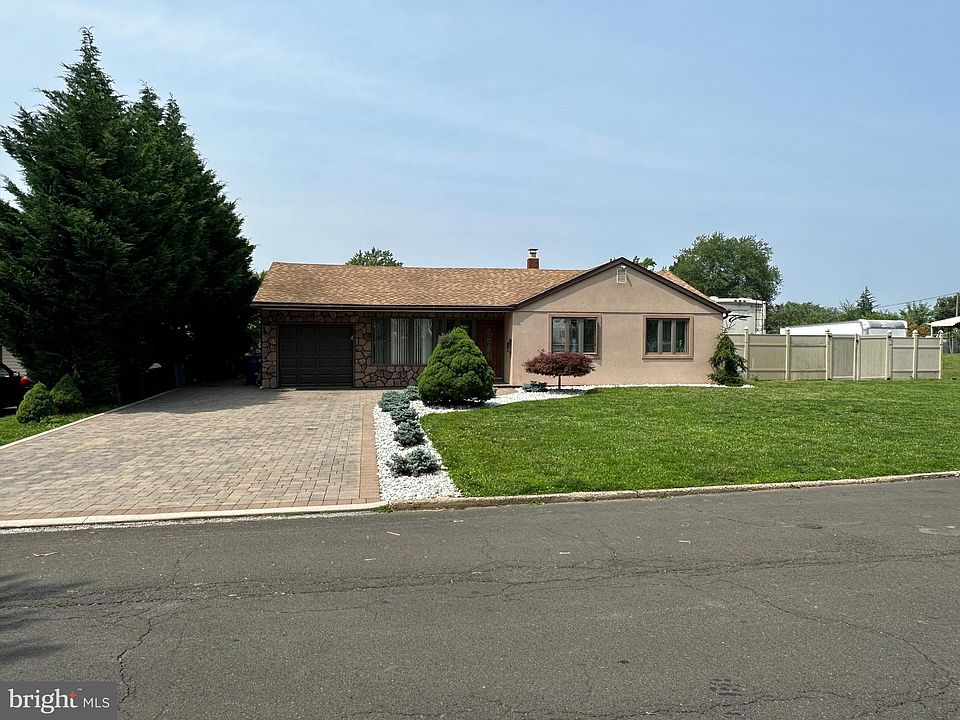 Welcome Home to this beautiful Ranch in Feasterville, on the quiet street in Neshaminy School District. The moment you approach the home you will feel welcoming curb appeal of the custom hard scaping and landscaping inviting you in. Oversize 4 cars driveway. Exterior stone and stucco. Inviting open space with Cathedral ceiling, this home has big size living room as well as big sized dining room and large family room give you plenty space for entertainment. Also this home contains large size kitchen, with built in island. There are 4 substantial bedrooms and 2 full bathrooms. Tile and hardwood floors throughout the entire home, Heated floors trough the whole house. Numerous lights, lots of closets and large custom windows. There is great sized backyard with beautiful patio for relax and entertainment This home offers everything you need, schedule your appointment today and enjoy your new home.