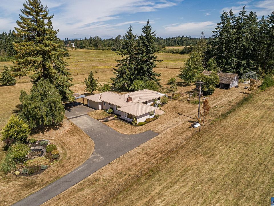 Dry Creek Mini-Farm with unobstructed, mountain views on over 5 level acres of pasture for all of your animals or gardening needs. Mature landscaping with several fruit trees including apple, cherry and plum; a sequoia tree; a Chestnut tree and many berry bushes. 1,008 sq ft barn and original chicken coop. Well built home features a heat pump, propane insert, double pane windows and a metal roof but could use a bit of cosmetic TLC. Attached garage, carport and plenty of parking for your RV, Boat, etc..