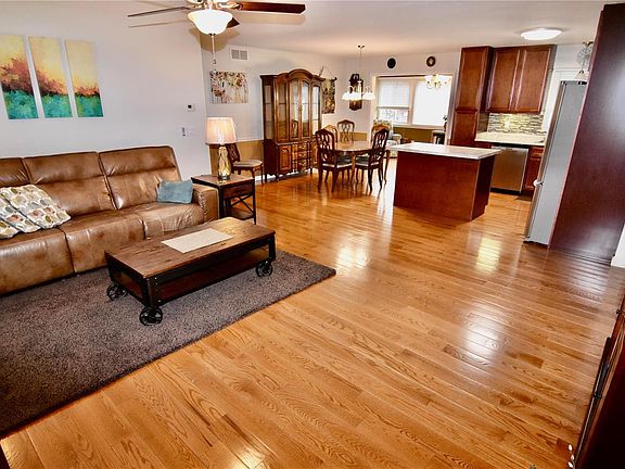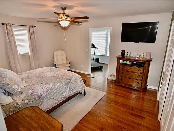 This stunning open floor plan wows you from your first step with gorgeous hardwood flooring throughout, high end cabinetry with under cabinet lighting, spacious entertaining are that is open to the kitchen. Just off of the main living area you will find a bright and cozy four season room overlooking the huge backyard and concrete patio. The master bedroom offers plenty of space, an oversized closet, and its own four season room with wall to wall windows perfect for morning coffee or some much needed "me time". This home has been recently updated with hardwood flooring, roof, gutters, paint, and appliances. The basement is a large, open blank canvas for plenty of room to expand. With a full bathroom rough in and a walkout to concrete patio and outdoor storage area this basement is an easy project to add bedrooms, bathroom, and living area. This home shows beautifully and has been meticulously maintained. Don't miss your chance at this one...It definitely won't last!!!