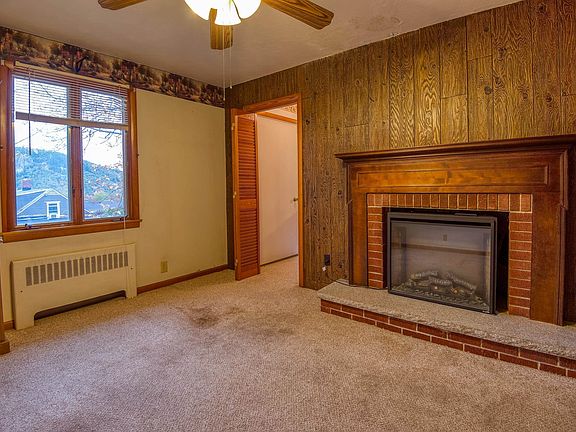 This well maintained 7 room Ranch home boasts many desirable features throughout the premises. Beginning with the lot, this 0.46 acre corner parcel offers numerous advantages of usage… from plenty of off street parking to hosting events in the backyard, the sky is the limit. Upon first glance, this home and detached 2 car garage’s brick veneer exterior provides plenty of charm and character. This home provides one floor living. The spacious living room provides the ability to enjoy pleasant mountain views. In addition to 2 bedrooms and a full bath, there is also a den/office space with an electric insert fireplace.
