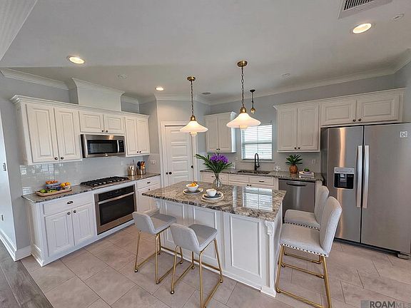 Discover this stunning modern home featuring 3 spacious bedrooms and 3 full bathrooms, perfectly situated off Burbank Dr and Siegen Ln. This beautiful home features open and spacious living areas with high ceilings in living and dining room. Adjacent kitchen and large breakfast/keeping area. Private courtyard-style back porch. Full-size utility room off garage. Private master bedroom with wall of windows to backyard. Attached master bath with WC, walk-in shower, jetted tub and oversized walk-in closet. Secure interior entrance from garage.