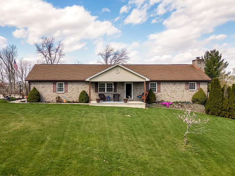 Welcome to your dream home! A Charming 3-bedroom, 3 full bath ranch nestled on a sprawling 1.73-acre lot. As you step inside, you're greeted with a warm, spacious, open-plan living space with a large stone Fireplace. Beautiful, large eat-in kitchen featuring stainless-steel appliances, ample cabinet space, & pantry with walkout to covered porch. Three generously sized bedrooms on the main level; the primary bedroom includes adjoining bath & large walk-in closet. Lower level includes a finished basement, family room, home office, & recreation area with wet bar. A large space with so many possibilities. Discover your own private paradise outside with an above ground pool surrounded by lush greenery creating the perfect setting for outdoor entertainment. The expansive yard offers plenty of space for gardening, play, & room to add your own additions for your outside enjoyment. This ranch home offers the perfect blend of comfort, style, & tranquility providing an idyllic retreat to call home!
