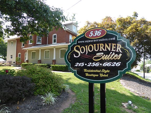 The Sojourner is a Victorian estate located in Harleysville, Pennsylvania, that has been renovated into six executive suites. Specializing in long term and short term corporate stays as well as No Lease Rentals. Each fully furnished suite features: Free wireless Internet access Fully-equipped kitchen Central air-conditioning Cable television Housekeeping & Maintenance on staff 24 hours a day Queen-size bed Housekeeping Monday, Wednesday & Friday Courtesy washer and dryer Nightly, Weekly & Monthly rates are available