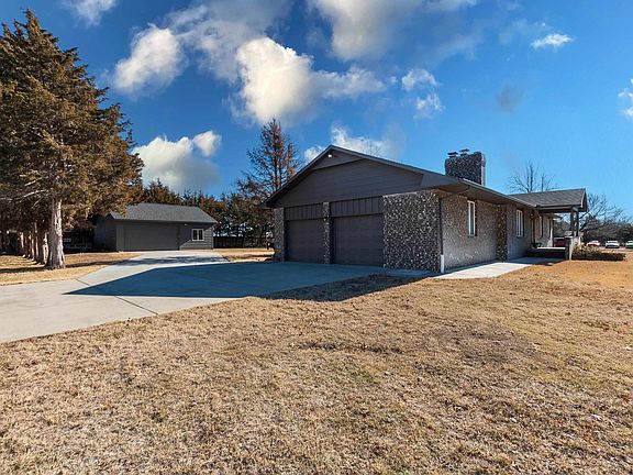 Great location ! Corner lot... ALL BRICK ranch home in popular Andover Schools with Sedgwick County Taxes on .51 acres with detached 30 x 30 garage/shop w concrete floor, electric & RV/Boat/Trailer Parking on side. NO specials, NO HOA/DUES. New Roof, gutters, Chimney Cap & flashing 2023. 3 bedroom, 3 bath, w car attached & 2 car detached garage/shop. Two beautiful brick wood burning fireplaces in living room and family room. Covered front porch & partially covered back patio & pergola are just a few of the highlighted features & amenities. Tile/wood floor entry. Charming living room w floor to ceiling brick fireplace with built ins. Dining area w slider to back patio and wood floors. Kitchen with bar seating and wood flooring. Granite countertops in kitchen and all appliances stay. New paint in master & hall bath with some updates. Nice size master with master bath. 2 additional bedrooms and hall bath on main floor. Downstairs holds a huge family/rec room with egress window, full bath, large bonus room and storage. A floor to ceiling brick fireplace in family room for chilly evenings. 60 gallon water heater 2018, HVAC w humidifier 2012, lift for basement bath. Exterior amenities include an irrigation well & pump, new exterior paint 2018, new concrete driveway 2018, RV/boat/trailer parking next to detached garage. Mature trees. Great neighborhood with nice size lots to create your own oasis. Easy access off 159th or Central. Near Terradyne golf club.