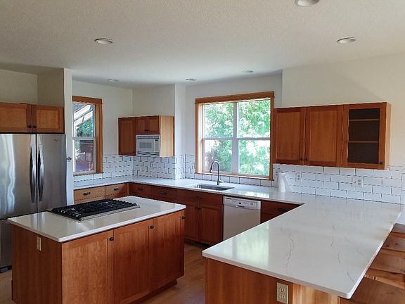 Bright, light home with high ceilings and numerous windows offering abundant sunlight in beautiful, NW neighborhood on Awbrey Butte within a 10 minute walk to the river trail and 20 minute walk to Drake Park and downtown Bend. Luxurious, expansive kitchen with quartz countertops, tile backsplash, and professional grade, stainless steel range. Hardwood floors with tile in foyer, bathrooms, and mudroom. Carpet in guest room and upstairs. Second floor spacious master suite with lovely views of the hills, en suite bathroom (recently renovated with quartz countertops, undermount sinks, stylish faucets and light fixtures, and a low water consumption Kohler toilet) and walk in closet. Second floor junior suite with recently renovated private bathroom with custom tile bathtub surround, new tub, quartz countertop, undermount sink, stylish faucet and light fixture, and large closet with shelves. Office with views of Pilot Butte and northeastern hills. First floor bedroom off hallway with recently renovated full bathroom featuring a step in shower with custom tile and new fixtures. Naturally landscaped front yard and fully fenced backyard with lawn and patio offering wonderful outdoor space. Two car detached garage and driveway. Lovely and bright, furnished one bedroom apartment above the detached garage is currently available for $1650 per month plus utilities. If the apartment is rented with the main house, the price would be $4900 per month plus utilities. Unfurnished. Water, electricity, cable/internet, gas, garbage pick-up, and snow/ice removal are not included. No smoking. Well behaved pets considered for an additional pet fee. Driveway, garage, and on street parking available. Please note that there is a lovely, furnished one bedroom ADU above the garage that is currently available to rent for an additional $1650 plus utilities. $4900/month for both units plus utilities and snow/ice removal.