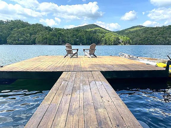 Welcome to Treetop Lake Cottage! A successful short term rental fully renovated in 2020. Within the gate community of Nantahala Shores, this lake front, private dock has one of the best views of Lake Nantahala. New tankless water heater, new HVAC, new kitchen cabinets, fridge, oven and washer and dryer. Open living, dining and kitchen can take in the spectacular views. Hardwoods in the main living area and new LVT in bedrooms, tile in the bathrooms. This house is set up to sleep 10. Primary bedroom has an ensuite bathroom. Guest bedroom has a queen bed and the bunk room sleeps 6 with both sharing a hallway shower/tub bathroom. This turn key rental is only being sold as sellers are consolidating their markets. Nantahala Lake is the 2nd highest lake east of the Mississippi at 3,000 ft elevation. Convenient to Knoxville, Asheville, Atlanta - this lake is stunning, clean and peaceful. Come put your feet up and enjoy the beauty of Lake Nantahala on a ready to go rental whether you enjoy as your own retreat as it is immaculately maintained and cleaned regularly or continue the 5 star stays as a successful ready to go - Treetop Lake Cottage short term rental. Comes fully furnished but based on offer furniture may be sold outside purchase price.