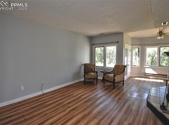 VIEWS, VIEWS everywhere of Pikes Peak and the Front Range. No rear neighbors on this mountain top location, just grass and open area and mountains. Newer updated kitchen with newer self closing cabinets, countertops and all appliances. Tiled master bath plus full bath and bonus family room along with cozy living room featuring fireplace and luxury vinyl floors. Enjoy the patio and enjoy the views for this 1 level living.