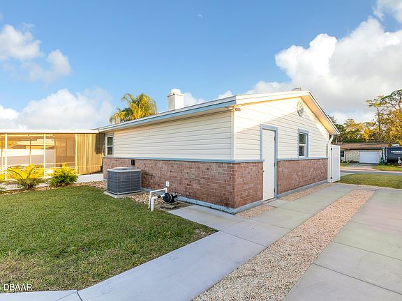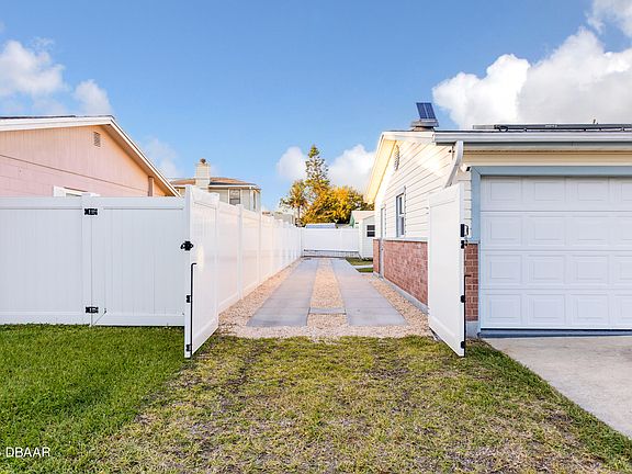 Boat/RV/trailer parking, move in ready, fully fenced, no flood zone, and a BRAND NEW METAL ROOF scheduled! Zoned for Ormond Beach Middle School. Tucked away in one of Holly Hill's most desirable neighborhoods, this 3-bedroom, 2 FULL bathroom, concrete block home, is just steps to the Riviera Golf Course and less than 2 miles to Pictona. This is a charming home that has been loved and properly cared for for many years. Updated double paned vinyl windows & sliding glass door, 2019 HVAC & 2017 water heater. Situated on an 80x100' lot fully privacy fenced with aluminum post reinforced white vinyl panels. The backyard has a large storage shed and designated BOAT or RV parking with 23 ft of engineered mat at entrance, double gate, poured concrete driveway, trailer hitch pad, and direct access to the garage. Boat/RV parking area is 8 ft 8 in wide and 28 ft deep. The home itself is absolutely adorable inside and out with a covered front porch walk up, ceramic tile throughout all main living & wet areas, fresh interior paint, and recently remodeled bathrooms with custom tile showers, new vanities, lighting & fixtures. Kitchen has granite countertops, tile backsplash, brand new stainless steel appliances, and is adjacent to the dining room which could easily be opened up to create a large eat-in kitchen should you so desire. From the dining room through the new sliding glass door you'll find the 225 sf covered back porch which is its own little retreat - large, fully screened, linoleum floors, and private from the neighbors. Full sized 2-car garage with new epoxy flake flooring, Level 2 hardwired Tesla charger, fresh paint, and washer/dryer that will convey. Irrigation well and sprinkler system in front yard. This home has no history of flooding and is located in flood zone X. Super quiet neighborhood with minimal traffic and super low turnover! Ask your agent for the walkthrough video!
