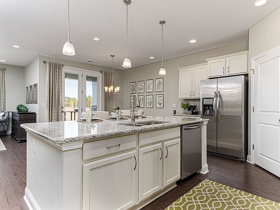 Our Claiborne plan is the perfect one level home with a beautiful, open concept living area for entertaining. The kitchen features granite countertops, oversized island, 36" staggered cabinets, tiled backsplash, walk-in pantry, and stainless appliances. The large owner's suite is tucked away at the back of the home, separated from the other bedrooms, with a double vanity and tiled 5' shower in the master bath along with a huge walk-in closet and separate linen closet. Beautiful engineered hardwood floors run throughout the foyer, kitchen, living, and dining rooms. Spacious covered rear porch overlooking the pond adds additional outdoor living space. Ask about our Home Is Connected smart home package that is included in all of our homes! *Photos are of a similar Claiborne home. (Home and community information, including pricing, included features, terms, availability and amenities, are subject to change prior to sale at any time without notice or obligation. Square footages are approximate. Pictures, photographs, colors, features, and sizes are for illustration purposes only and will vary from the homes as built. Equal housing opportunity builder.)