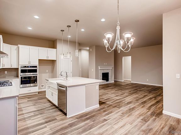 This beautiful open concept ranch has two bedrooms, one in the front of the home, and the Owner's bedroom tucked away in the back for optimum privacy, as well as a study with French doors. This home has a gourmet kitchen with a professional hood, built in gas range and stainless steel microwave/oven combination. The design features in this gorgeous kitchen are Aspen Grey Quartz countertops and 42" Maple Lancaster White Icing Cabinets. The living room has a gas fireplace, and access to a 30' x 9' covered patio. There is a full unfinished basement with rough in plumbing for a bathroom. This home sits on a lot backing to beautiful open space. Photos and virtual tour are examples of the floor plan only and may showcase options that are not selected in this particular property.