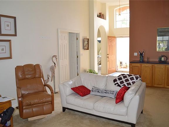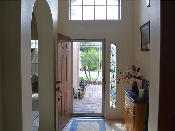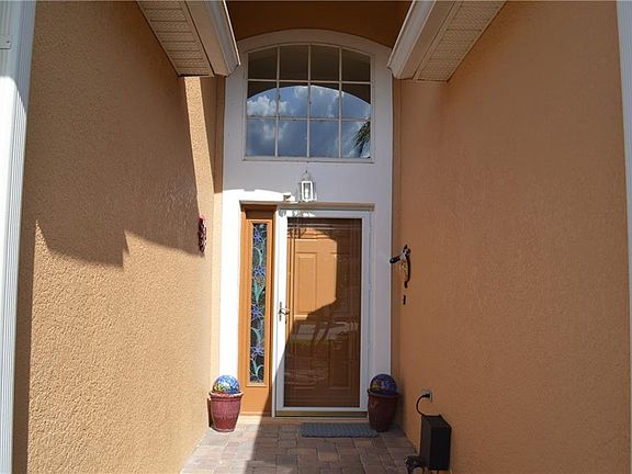 AN EXCEPTIONAL RIDGE DALE MODEL home, from the lovely curb appeal with an extra wide brick paver driveway, to the interior with fantastic features: spacious, open living & dining area with dramatic 12 ft. ceilings; kitchen with stainless steel appliances, quartz countertops, oak cabinets w/ corner shelves, tile backsplash, oversized sink, pull out drawers, double closet pantry, breakfast bar & nook. The interior laundry has an upgraded washer & dryer; A fabulous heated and air conditioned Florida room with tile floors & acrylic windows opens to a concrete patio for outdoor cooking; The master bath features a Jacuzzi tub w/grab bars & cultured marble countertops with dual sinks, stand alone shower and walk in closet. A top of the line AC unit was replaced in 2014; a NEW ROOF was just replaced in April, 2018! And the exterior was painted in 2014. The garage has an electronic screen and plenty of room for storage. Some furnishings are available separately outside of contract. This lovely home also comes with a ONE YEAR HOME WARRANTY to the new owner for peace of mind and there is a warranty on the water heater that is transferable. High Vista is a 55+ community with a clubhouse full of amenities such as: large ballroom, library, card room, fitness center, arts & crafts room, pub and game room, huge heated pool & hot tub,tennis, bocce ball, pickleball and so much more! Ridgewood Lakes is a gated, golf course community, conveniently located to shopping, hospitals, airports and all attractions!