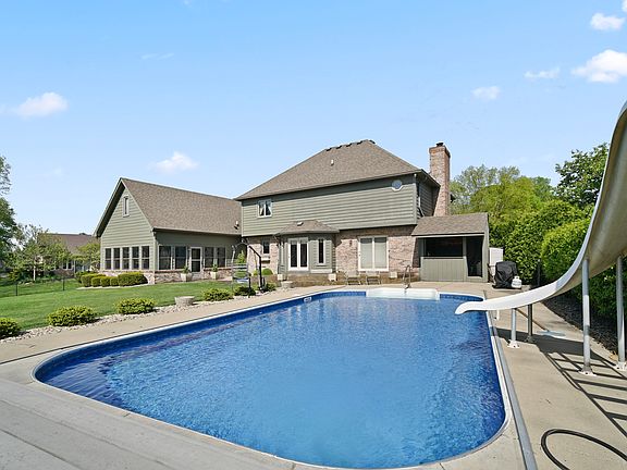 Just in time for summer enjoyment! Featuring the most incredible backyard with a heated in-ground swimming pool as well as a large patio and tiki bar for entertaining. This home is awaiting your family and friends! Finish off the day in your new ultimate basement for movies or game night entertainment. Spend your mornings relaxing with a cup of coffee in the beautiful 3 seasons sun room. - With 4 beds, 2 full/2 half baths, this home provides loads of space, storage, and room for entertaining. The main level features the kitchen with corian countertops, a breakfast nook, a full dining room with trey ceiling, and large living room complete with fireplace. Upstairs you'll find the master suite featuring a vaulted ceiling, large walk in closet, garden tub, corian countertops on the double sink vanity and tub. Down the hall is another full bath and 3 spacious bedrooms. The 4th bedroom is very large, featuring a big closet and separate storage area. There is entrance to a bonus room from the 4th bedroom that would make a great play room or 5th bedroom. Windows on the home have a lifetime guarantee is transferable to the new owners! With the wide door frames, ramps, and multiple chair lifts on the stairs and pool, this home is completely handicap accessible. The owners have meticulously cared for and maintained this home. Come see it today!