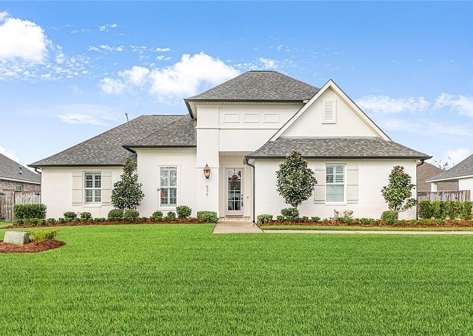 Meticulously maintained (gotta see!) 4 Bedroom 3 full Bath home in Madisonville! Split plan w/3 bedrooms 2 baths on one side and guest bedroom and bath on the other. Primary bath has separate tiled shower and dual closets. 10’ ceilings in living areas, with gorgeous details throughout. Loaded with many upgrades. Extra cabinetry in laundry. Plantation shutters throughout. Brick patio Plus added patio, Gutters and french drains added. Rear yard Access with double gate for boat or RV. Generous large floored attic.