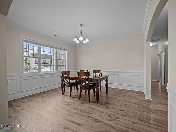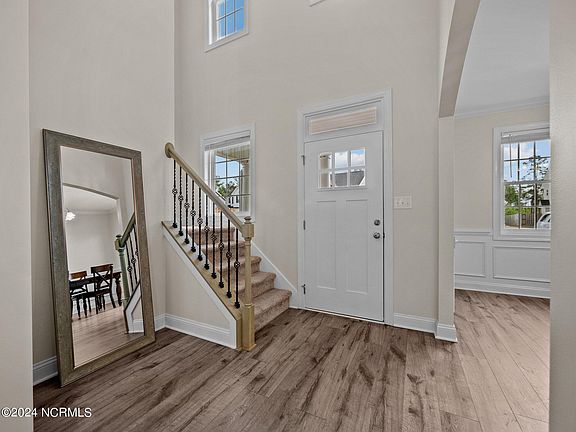 Welcome home to the Laura E floor plan in Oyster Landing! Thoughtfully designed combining practical features with stylish details. The two-story foyer creates a grand entrance, contributing to the overall appeal of the house. The seamless LVP flooring provides a modern and cohesive look throughout the main living areas, making maintenance easier and adding a touch of elegance. The formal dining room adds a touch of sophistication for special occasions, while the living room with a cozy fireplace provides a comfortable and inviting space for relaxation. The kitchen features staggered cabinets for ample storage, a dedicated breakfast area and an island. The granite counters and stainless steel appliances add a touch of luxury and functionality to the heart of the home. The downstairs bedroom with its own walk-in closet and en suite bath is a convenient and versatile space, suitable for guests. Upstairs you will find a true owner's suite with a sitting room, multiple walk-in closets, a double vanity, a soaking tub, a separate shower, and stylish finishes. The layout is beautifully designed with separate spaces for different purposes, offering both privacy and communal areas for family and guests.