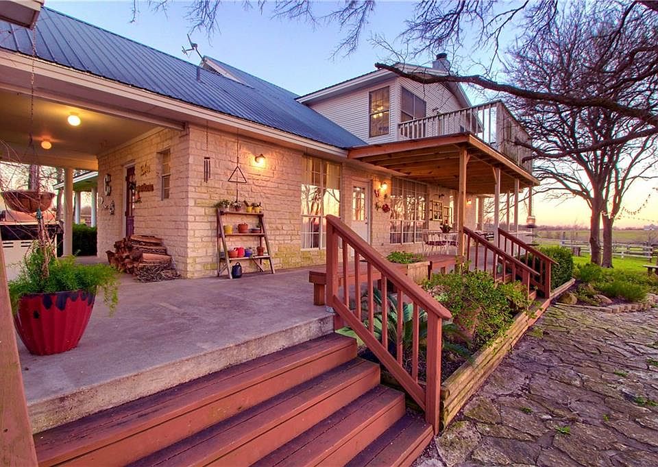 19 ac +/-w/ Immaculately maintained home perfect for cattle or horses. Spacious home w/ beautiful wood look tile in living areas. Long covered porches front & back & an upstairs balcony for views of 3 ponds & the lights of Austin. Guest room w/ private bath & large master on first floor. His/hers vanities, sep shower & jetted tub in master suite. Office upstairs could be bedroom or hobby room. 3 big walk-in closets. Fenced, Large barn. Greenhouse. Additional ac avl. Good loc. easy access to Austin.