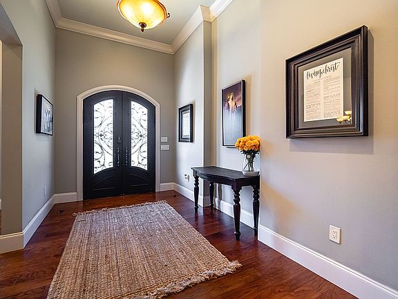 This luxurious contemporary home features impeccable finishes and impressive extras throughout the property, from beautiful engineered hardwood floors, to gorgeous granite countertops and open concept spaces. A large home gym space, reinforced dunkable basketball goal and an oversized pool make exercising easy. The elegant travertine pool patio, outside kitchen/BBQ and entertainment area along with a screened-in porch adjacent to the pool makes this property a relaxing personal refuge or a fun entertainment space. Pleasing touches include epoxy layered garage and patio floors, multiple climate-controlled pantries and storage rooms, large closets with built in drawers and a huge kitchen island perfect for gathering and eating! Located in the gated Viewpointe subdivision, this 1.5 acre lot includes hardwood trees and plenty of space to view wildlife and enjoy the beautifully landscaped property. Guests are welcome with four bedrooms and four bathrooms downstairs and an attractively proportioned mother-in-law suite upstairs with its own kitchen, bedroom, bathroom and laundry room with washer and dryer connections. This turn-key property is an excellent value, better than new construction and perfect, luxurious living!