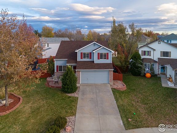 Beautiful 2 story home in desirable Fox Run neighborhood. Main level is bright & open w/hardwood flooring & spacious family room/eat in kitchen combo, island & pantry. Upstairs is Master bedroom w/ 5-piece bath & walk in closet. Also 2 additional bedrooms & loft, perfect for play or office. Finished basement has rec room, bedroom & full bath. Huge corner lot on cul-de-sac. Private back yard with Front range view, large patio, shed, & play area. Equipped w/Smart Home features. Near park and lake.