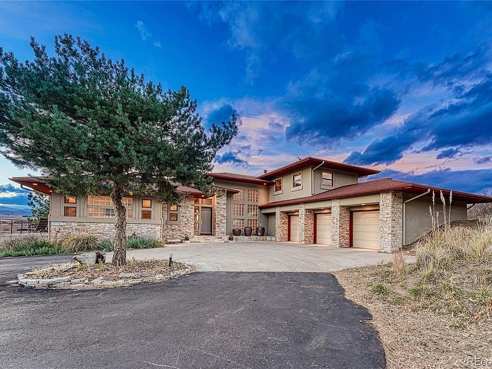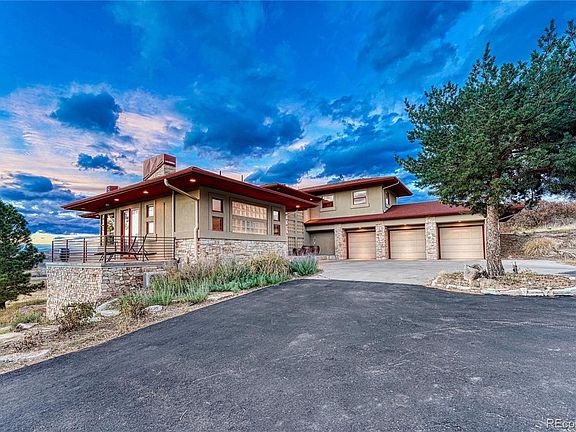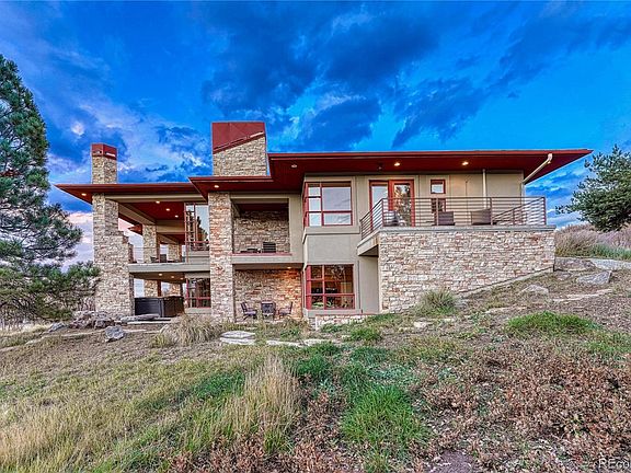 Here is your opportunity to call Lambert Ranch home! This one-of-a-kind contemporary home will WOW you at every turn. Located on over 11 acres, this is your own personal slice of heaven w/ expansive views of the front range and the perfect balance of outdoor & indoor living. As you enter you'll appreciate the architect's contemporary design that is carried throughout the home from the front door, to the grand floating staircase, floor to ceiling windows, 5-panel glass pane interior doors, the glass block accents - all letting in the perfect amount of light and truly allowing you to soak in the breath-taking Colorado scenery. The main floor, featuring radiant heat travertine tile floors, has an open floor plan seamlessly flowing from the living room, dining room & kitchen - then expanding out to the covered back deck complete w/ outdoor fireplace. The gourmet kitchen features high end appliances including two wall ovens, warming drawer, two drawer freezer, trash compactor, two dishwashers, counter-top steamer & cooktop - PLUS two pantries surrounding the glass front refrigerator & an ice maker in the wet bar by the dining room. In addition to a dedicated office, you will also find the Primary suite on the main level w/ fireplace, two balconies (one which is wired for hot-tub), large bathroom w/ dual water closets, dual vanity, walk-in shower & walk-in closet complete w/ washer/dryer hookup. Upstairs is a true guest suite complete w/ living room, fireplace, kitchenette, bedroom & 3/4 bathroom. Want to head to the basement? Take the stairs or take the elevator! There you will find 3 more bedrooms (one an en-suite/used as home gym), wet bar, two 3/4 bathroom & large open bonus room great for tv, pool table & more! Now for the extras! Swim Spa, water softer/treatment system, whole home automation system, 5 ductless HVAC units ... nothing has been forgotten on this house! Plus - you are within 45 minutes of Denver & Colorado Springs, & 15 minutes to retail in Castle Rock!
