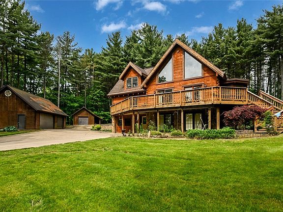 Looking for seclusion and privacy? This rustic home sits back a long drive and is surrounded by mature trees. This home features 3 bedrooms, 2 full bathrooms & 2 half bathrooms. The main floor features the open kitchen, dining area, half bath, primary bedroom with en-suite bath, walk-in shower and walk-in closet. The large living room with wood burning fireplace and oversized bay window overlooking the property complete the main floor. Heading upstairs are 2 additional bedrooms and a full bath with a open staircase that overlooks the stone fireplace & living room below. Making your way to the walkout basement you will find a gas burning fireplace in the finished family room, a large office area, a half bath, a mudroom with dog wash station, and an unfinished utility/laundry room. A large wrap around deck with covered porch are perfect for enjoying the peaceful evenings or quiet country mornings. A oversized 3 car detached garage and another detached garage currently used as a workshop offer plenty of storage for any hobby. Country living with plenty of woods to explore, yet close to Medina and all the amenities of the city. Set up your showing today.