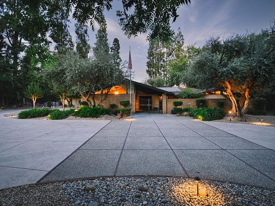 Exquisite Mid-century Modern home designed by nationally renowned architect Cliff May. This private estate is situated on a 1-acre homesite with mature landscaping, circular driveway, gated courtyard entry, OWNED solar, private tennis court, garden area, fruit trees, custom redwood fencing w/ steel posts & beautiful pebble-tec pool. This home has many updates for modern living and energy efficiency. Newer floor-to-ceiling windows & sliding glass doors line the back of the home, creating an incredible indoor/outdoor living experience, allowing the outdoors to be an extension of your living & dining spaces. High beamed ceilings adorn each room, elegant hand carved doors at every turn, Terrazzo flooring enhances the Mid-century vibe in the main living area, while glazed Italian tiles add warmth and style to the kitchen & dining room. Every detail is a memory point of this artistic & spacious 2,672 sq ft single story home, comprising of 2 bedrooms & 2 baths, Chef's kitchen, expansive great-room, dining area, laundry room & flex space office/wine room. The kitchen is truly an inspirational space to work and create thoughtful meals with state-of-the-art appliances, hammered copper sink, Subzero refrigerator & 6 burner + griddle American Range. This home is a Mid-century masterpiece!Bedroom and bathroom count is different than tax records, buyer to verify if important.