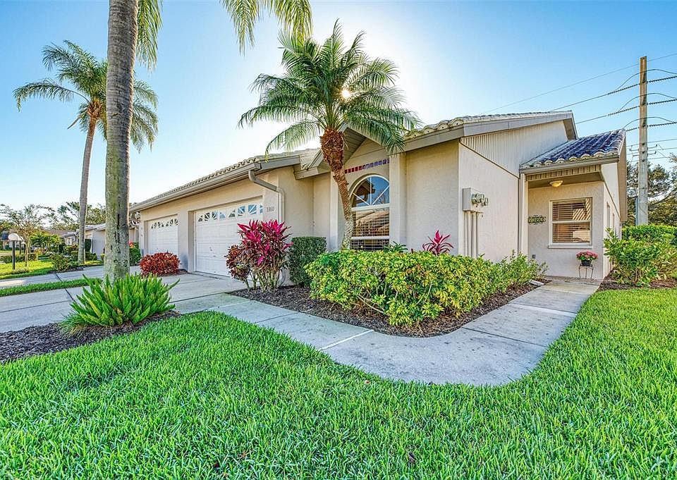 Nestled in one of the most desirable villa communities in Sarasota, Crestwood Villas, lies the picture-perfect home. Lovingly maintained and updated to the nines, this spacious villa is simply waiting for you to call it home. With over 1,800 square feet, featuring three bedrooms and two bathrooms, the floorplan is just the right size. Upon entry, the high 10-foot ceilings give it a cathedral-like feeling that makes it feel even more spacious. A large living room and comfortable dining room are the perfect place to entertain and host parties galore. The massive family room is spacious yet cozy offering the perfect respite for nights at home. As is often the case, the kitchen, the heart of the home, is a masterpiece to say the least. Beautiful stone countertops, gorgeous backsplash, stunning light cabinets, meticulously maintained stainless steel appliances and so much more is featured in the kitchen. The master bedroom is large and bright, with a huge closet sure to fit an abundance of clothes and shoes. Beautifully updated shower, bathtub to soak away the stresses of the day, stone countertop, gorgeous cabinets... the master bathroom is simply stunning. Not only gorgeous, but also offering easy maintenance, the whole home, with the exception of the bathrooms and one bedroom, has lovely vinyl floors. Additionally, the massive, oversized porch may just be the piece de resistance. The perfect place to enjoy our year-round Florida weather, start your morning with a warm cup of coffee or end your evening with a tasty cocktail! For additional peace of mind, the AC was replaced in 2022, and the villa was replumbed in 2014! Crestwood Villas offers a plethora of amenities. This maintenance-free community has a pool, clubhouse, tennis courts, pickleball courts and so much more!