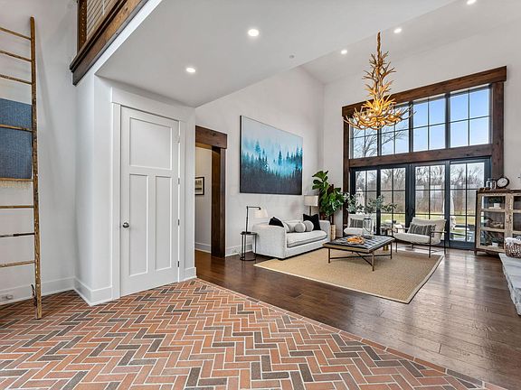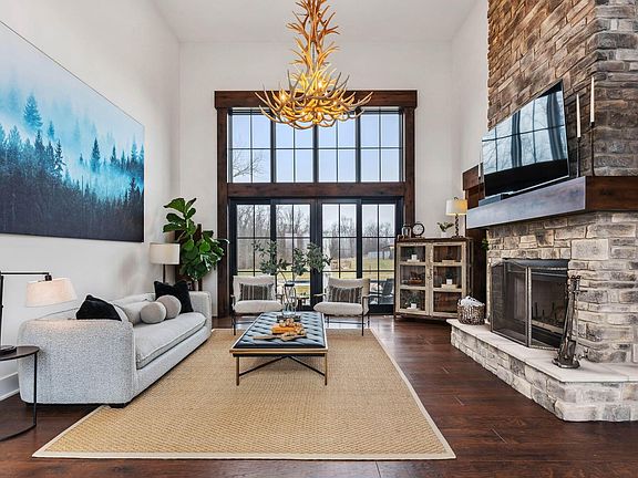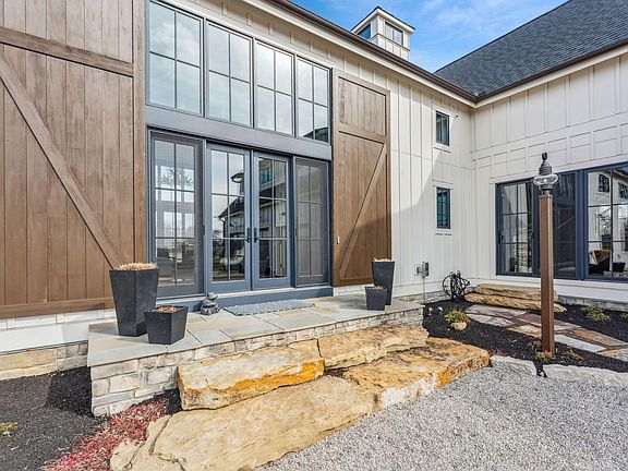 Modern Farmhouse on 15-Acre Estate. This perfectly curated executive homesite highlights 4-bedroom suites, 4.3 bathrooms, and over 6400 square feet of elevated cozy living space. Perfectly designed and boasts a 2-story great room w/2-sided stone fireplace open to the dining room, kitchen and sitting room w/vaulted ceiling. The chef's inspired kitchen offers beautifu finishes, 48'' Wolf range w/custom hood, 48'' Subzero refrigerator, 42'' cabinets, and oversized island w/honed granite countertops. First Floor owner's suite w/laundry, spa-like bath, and screened-in porch. The 2nd floor features private office, 3 bedrooms suites, laundry, loft, and bonus room. Finished Lower Level. 3 car garage. Impressive outdoor living w/pool, stone patio w/pergola, barn, sport court, solar panels & more!