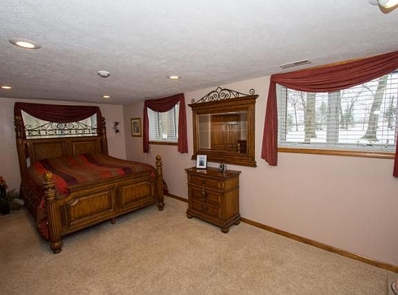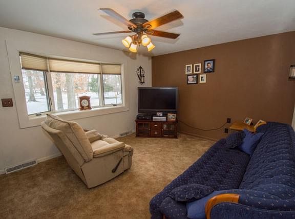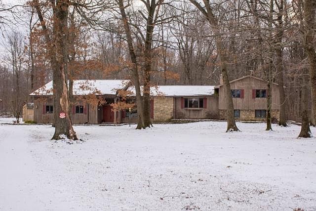 Spacious tri-level nestled on 9.84 wooded acres. 4BR/2.5BA light, bright, great room with lots of windows, open floor plan. Master bedroom suite with a fireplace and newly remodeled master bath with heated floors and seated vanity. Multi-level deck off the back of the house and a 40x63 pole barn with a woodburning stove, floor drain and plumbing for a bathroom. Garage is 31x40 with a rollup door for an RV. Lots of space for ALL of your needs.