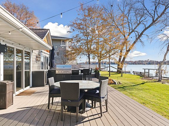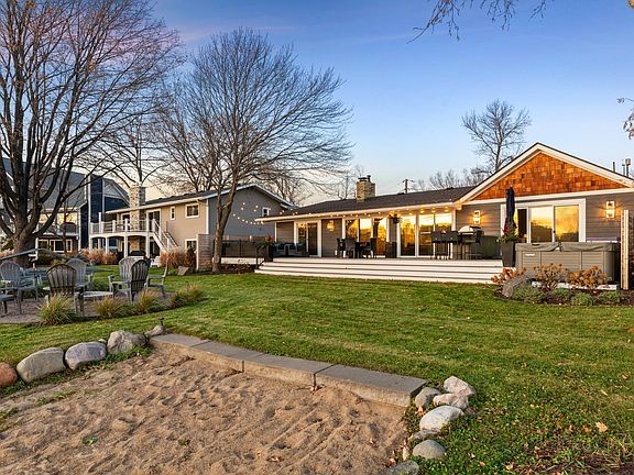 Step into the ultimate entertainer's haven – a seamlessly updated & luxurious open-concept 1 level lake home. From the sophisticated interior to the expansive, maintenance-free decking spanning the entire back of the house, this residence invites you to effortlessly transition between indoor and outdoor living. The spacious backyard beckons for year-round activities and leads to 80 feet of level lakeshore with ample space for large boats and private beach.