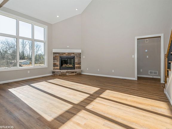 Discover the perfect blend of elegance and efficiency in this Energy Star Certified new construction home, set on 2.32 acres and is a professionally landscaped beauty. This 4-bedroom, 2.5-bath, two-story residence boasts a striking stone and vinyl exterior for lasting curb appeal. Inside, the heart of the home is a showstopping kitchen, featuring quartz countertops, a sit-at island, and ample space for culinary creations. The main floor showcases resilient plank flooring, while plush carpeting adds comfort to the bedrooms. The primary bedroom suite offers a tranquil retreat on the main level, conveniently paired with a main floor laundry room for ease of living. A grand living room, open to the second level, is highlighted by a stunning fireplace, making it a perfect gathering spot. The formal dining room exudes sophistication, ideal for entertaining guests. The full basement, plumbed for a third full bath, provides endless possibilities for customization to suit your needs. Experience the ideal combination of style, comfort, and energy efficiency—your forever home awaits!