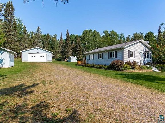 Just 10 minutes outside of Duluth or 10 minutes to Two Harbors and within walking distance of the Shores of Lake Superior sits this solid-clean-Move-In ready 1995 -2 Bedroom 'Gem' with a 24x36 Garage & Sheds! - The vinyl sided home is set on 2 acres and boasts a nice deck with a Sunsetter awning that overlooks the private gardens, Birds, and wildlife. The main floor has a sizable eat-in kitchen, a cozy Living room with a gas Fireplace, 2 Bedrooms, a Mudroom area and an updated Full Bath. The 1/2 Bsmt LL is perfect for storage and home to the mechanical area. Sump pump, Air Exchange, Water Softener, Updated Electrical, Propane Heat and so much more! Location..Location..Location. Just walk down the road in 2021 to the start area of the Grandmas 1/2 Marathon!
