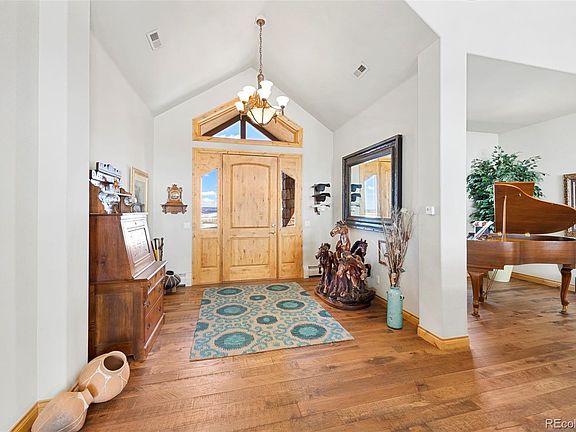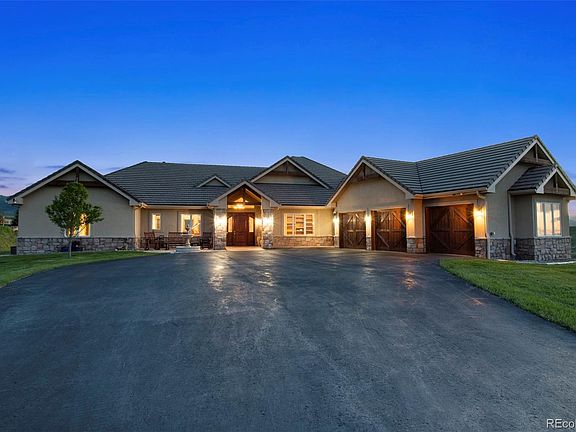 This 35-acre horse property in Horseshoe Ranch Estates, Sedalia, offers a stunning custom ranch style home nestled against the foothills. The property boasts a tranquil and secluded ambiance ideal for those seeking privacy and natural beauty. With its agricultural zoning, it presents a myriad of possibilities for agricultural pursuits or simply enjoying the spaciousness of the land.