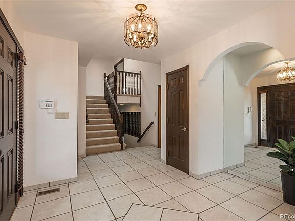 Arrive in style at this well-maintained 5-bedroom home in highly sought-after Cherry Hills North. Nestled on a lush, tree-lined lot, it blends timeless character with spacious living and exceptional privacy—ready for your personal vision. A stately façade and circular driveway set the tone, leading to sun-filled interiors with expansive bay windows that brighten the living and dining rooms while framing serene views of the manicured grounds—perfect for everyday living and entertaining. The large kitchen features a center island, casual dining space, and glass doors that open to a covered patio, ideal for outdoor meals. A cozy family room with a floor-to-ceiling stone fireplace connects seamlessly to the backyard oasis with grassy areas, a dog run, and multiple outdoor living zones. Upstairs, the primary suite offers private deck access and a spa-like bath with soaking tub, double vanity sinks, and walk-in, doorless shower. Two more bedrooms and a full bath complete the upper level. The lower level offers a second family room with brick fireplace, two bedrooms with built-in desks, and another full bath—perfect for guests or home offices. An expansive unfinished basement with fireplace and fireproof storage room presents endless possibilities. Unique to this space: dual staircases and a private entrance from the garage make this an ideal set up for multigenerational living. Additional highlights include a 3-car garage, skylights, tile flooring, metal roof, vault & central alarm system. Minutes from High Line Canal Trail, Cherry Creek State Park, I-25, I-225, and top-rated Cherry Hills Elementary—this is luxury living with unmatched accessibility.