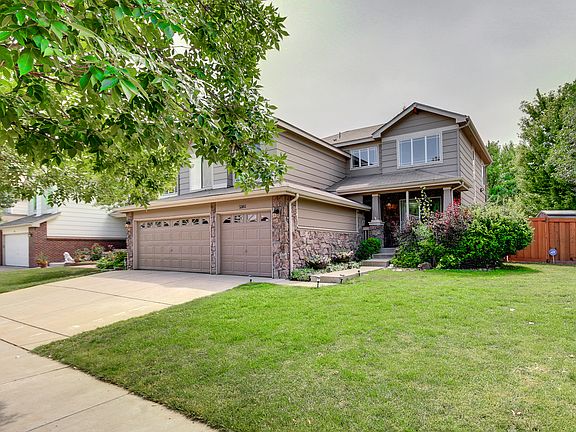 Welcome home to this beautiful 2-story home on a spacious corner lot in Grant Ranch! This home greets you with grand vaulted ceilings, all new interior paint, cherry wood floors, designer finishes and classic style throughout. The open floor plan transitions the front living space to a formal dining area, perfect for dinner parties or intimate family meals. The well-appointed kitchen boasts cherry cabinetry, tile backsplash, a SS appliance package and built-in breakfast bar. Indoor/outdoor living is made easy with the 2-tier deck off the kitchen including a hot tub, pergola, mature trees and professional landscaping. Cozy up by the fire on cool Colorado evenings in the inviting family room. Retreat to your primary suite, complete with a walk-in closet, 5-piece bath & private balcony. Two secondary bedrooms, a full bath with dual sinks and a bonus loft round out the upper level. The finished basement features a large den with a dry bar, a 4th bedroom and ample storage space. New roof, furnace, AC and garage door opener. Grant Ranch includes fabulous resort-style amenities including a private lake with dock space and free paddle boards, a community pool, tennis courts, pickleball courts and parks. Do not miss your opportunity to live in this amazing community, book your showing today!