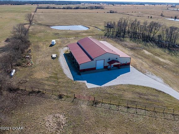 This property is situated in a prime location between Joplin & Seneca. This well maintained move-in ready barndominium sits nicely on 2.81 acres & was built to last in 2009. The remote controlled gate opens to a long chip & seal driveway which is fenced on both sides with pipe & five strand barb wire. This spacious 3BD 2BA retreat has two living room areas & a comfortable open living floor plan. All appliances stay, including the washer & dryer! Two lg. garage doors serve as a drive through garage and will accommodate a class A motorhome. It has a built in storm shelter, a Carrier brand dual fuel HVAC unit & whole house automatic generator. Shown by appointment only. 2021-11-30