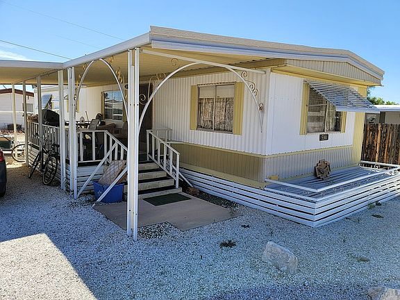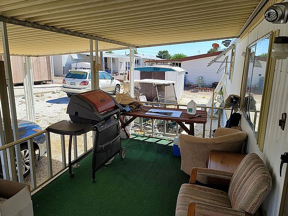 If this home is on a premium lot which is determined by size and view. If the CCRs will allow another single wide to be placed on this lot if you want to make it a jumbo complex. New flooring and roof with AC in the master bedroom and living room with evaporative cooling throughout the house. Recently added a detached workshop/garage
