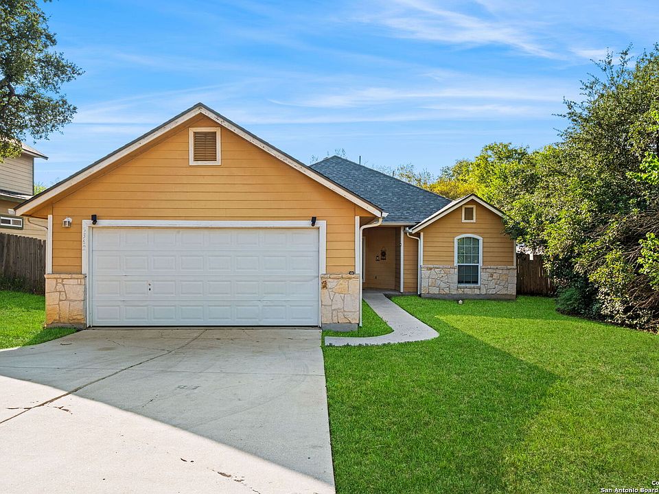 Great single-story 3-bedroom, 2-bath home with no HOA and the added benefit of owned solar panels for energy savings! Enjoy a spacious main living area with a cozy fireplace, perfect for relaxing or entertaining. Step outside to a large covered patio and fully privacy-fenced backyard, offering a wonderful outdoor retreat. The home also includes an attached two-car garage for added convenience. Ideally located near Loop 1604, you're just minutes from shopping, dining, and everything San Antonio has to offer-don't miss this opportunity! SOLAR PANELS (January 2022) ARE PAID OFF. ROOF Replaced 2021